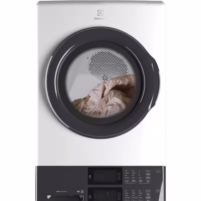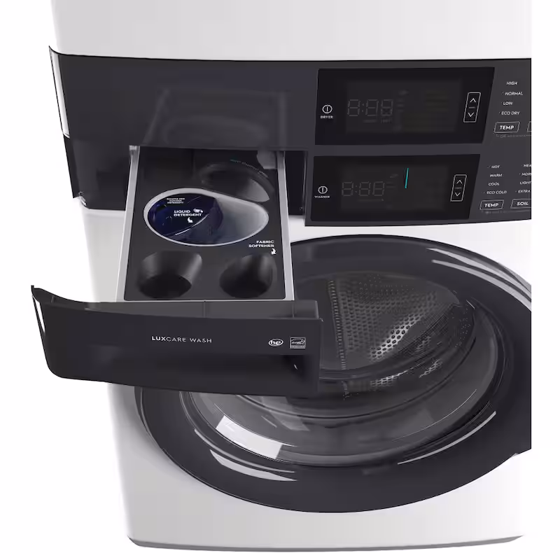 4.4 cu. ft. Stacked Washer and 8.0 cu. ft. Electric Dryer Laundry Tower in White with LuxCare Wash, Energy Star - Cheap Abt 4.4 cu. ft. Stacked Washer and 8.0 cu. ft. Electric Dryer Laundry Tower in White with LuxCare Wash, Energy Star - Cheap Abt