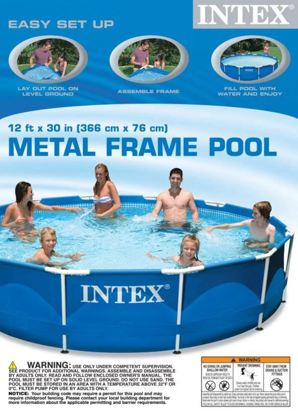 Intex 12' x 30" Round Metal Frame Above Ground Pool, Filter, Cover, & Maintenance Kit