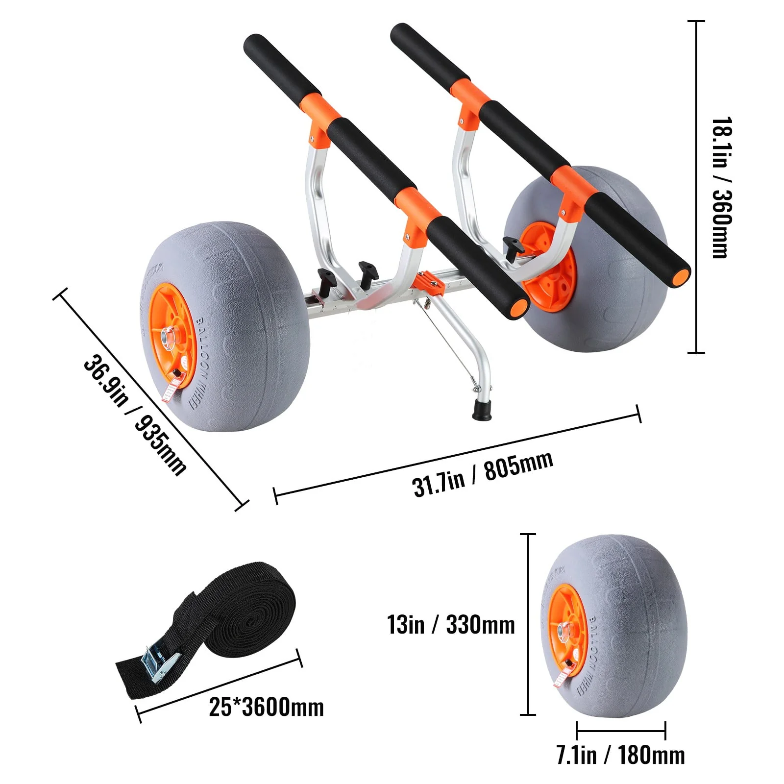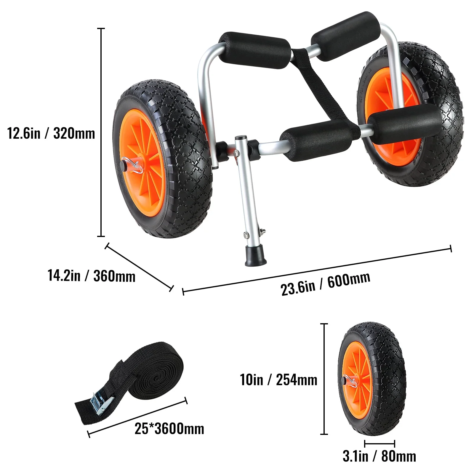 BENTISM Kayak and Canoe Trolley Cart with 10'' Solid Tires .320lbs Load Capacity with Adjustable Brackets and Straps