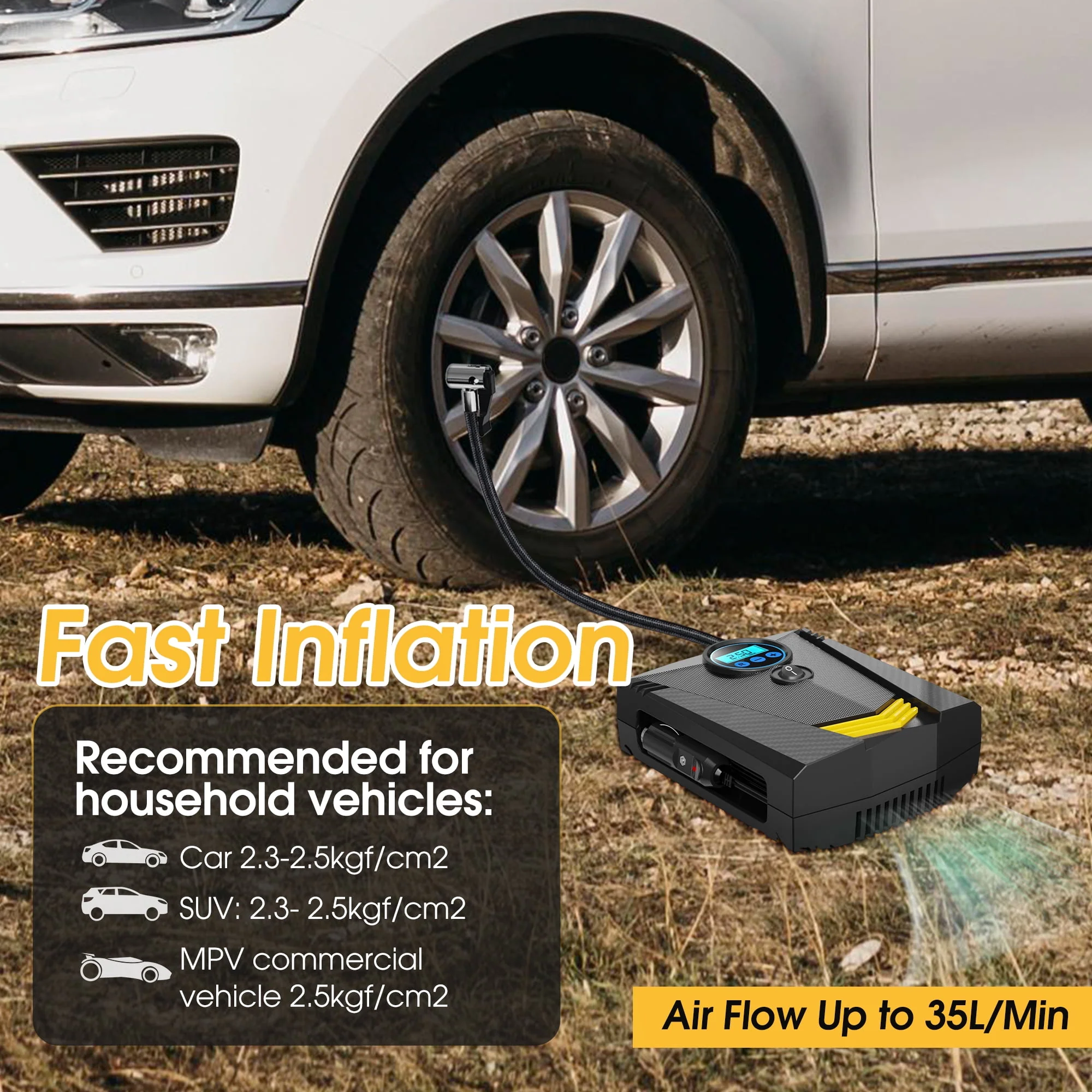 iFanze Tire Inflator, Portable Air Compressor for Car, Auto Air Pump with LED Light Gauge 12V DC, 150PSI Tire Pump Electric Air Pump Tire Inflator for Car, Bicycle, Motorcycle,Balls,Balloons, Black