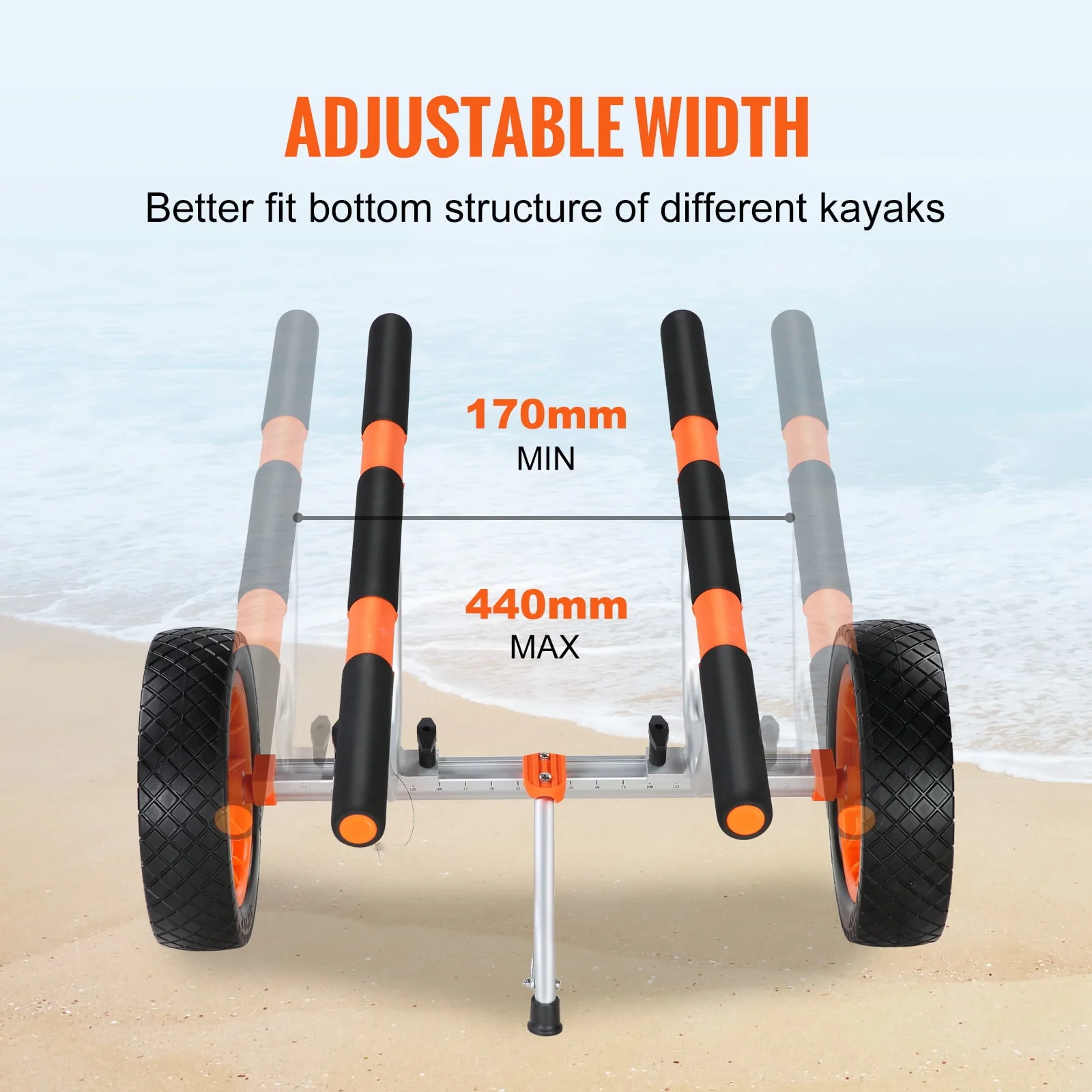 BENTISM Adjustable Kayak Cart Canoe Boat Carrier 280lbs Load with 10'' Solid Tires for Kayaks with Drain Holes of 1''