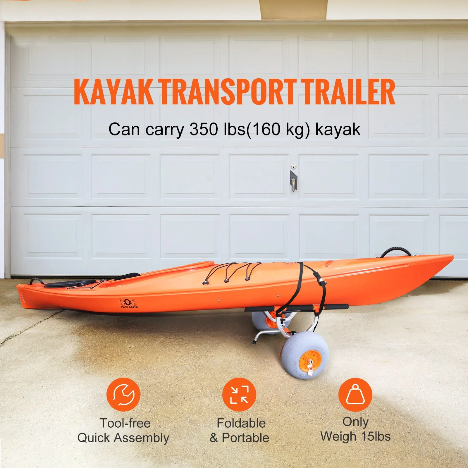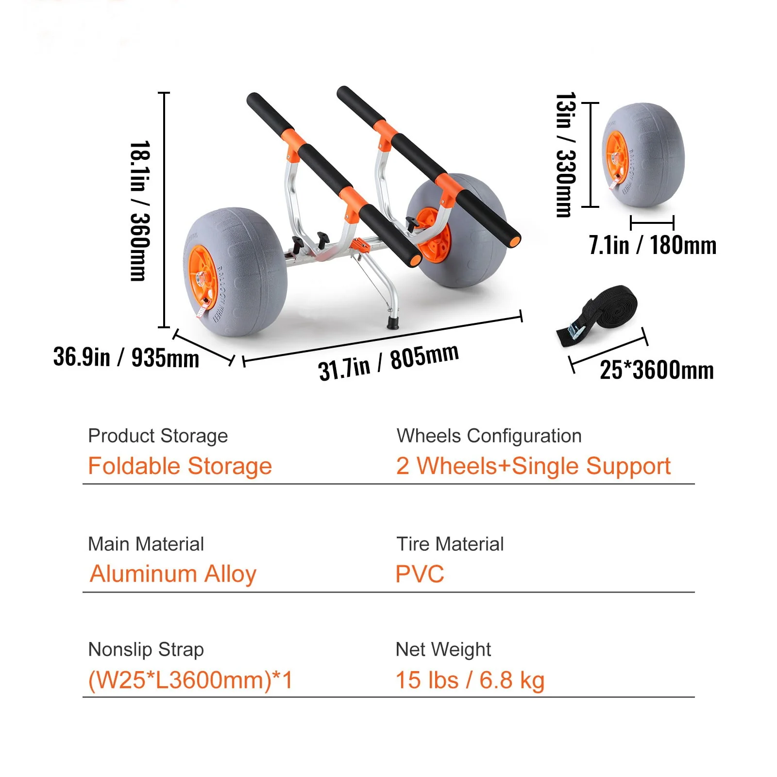 BENTISM Foldable Kayak Cart Canoe Boat Carrier 250lbs Load with 10'' Solid Tires