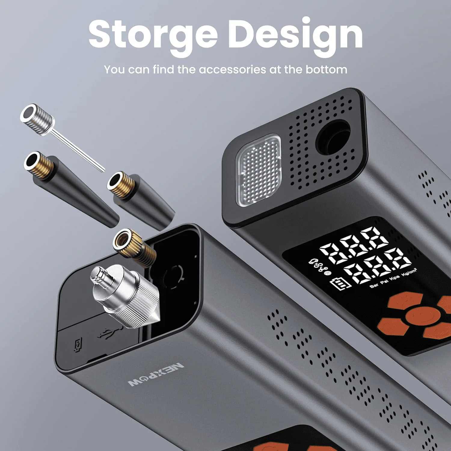 NEXPOW Tire Inflator Portable Air Compressor, Cordless 150PSI Car Air Pump with Digital Dual Screen, Electric Mini Tire Pump with 7500 mAh Battery, Small Car Tire Inflator with LED for Car, Bike, Ball