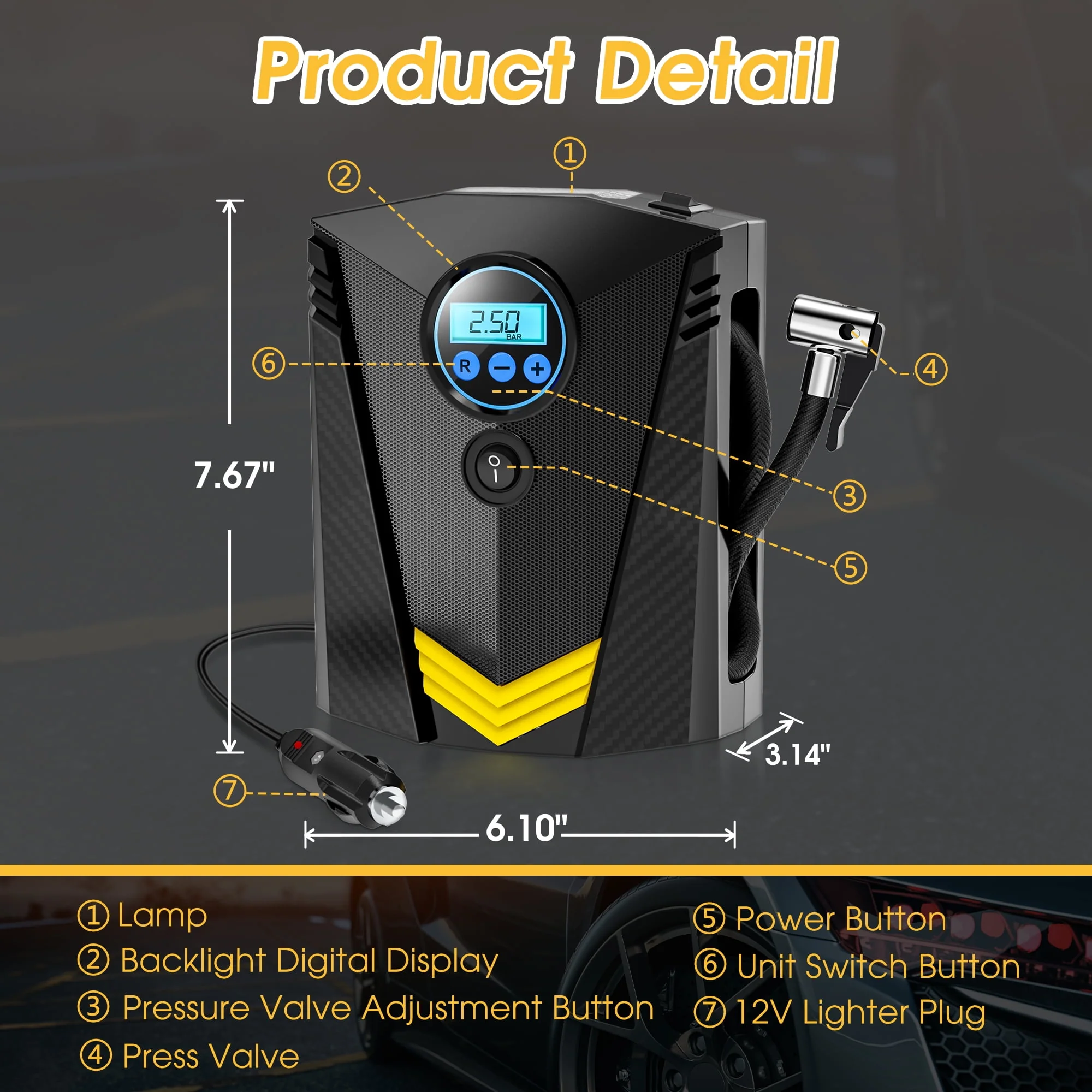 Hyper Tough DC 12V Digital Car Tire Inflator with Auto-off Function