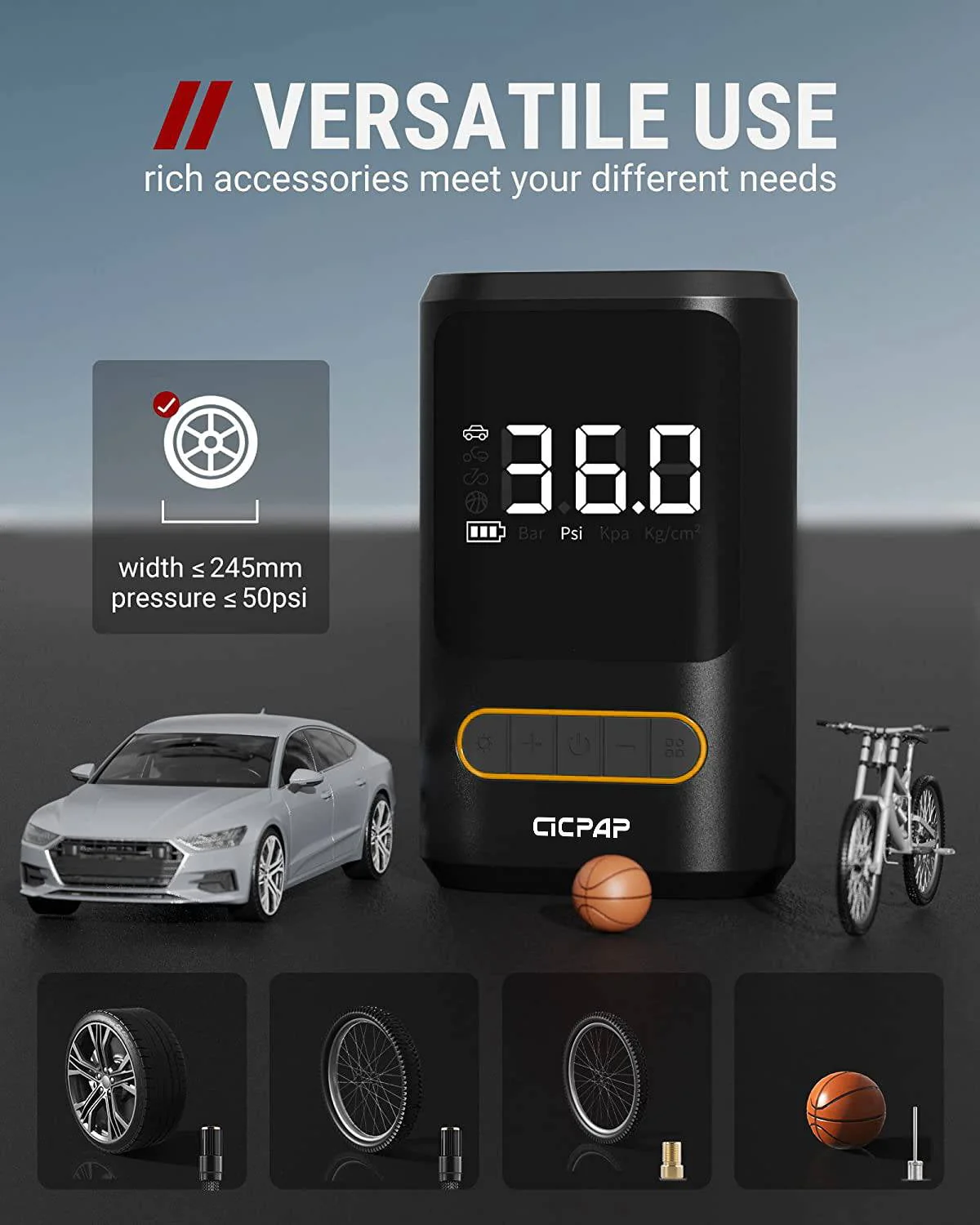 Tire Inflator Portable Air Compressor, CICPAP 150PSI Cordless Air Pump for Car Tires, Balls, Inflatables - Multipurpose Car Accessory, Auto Tire Pump with Digital Pressure Gauge